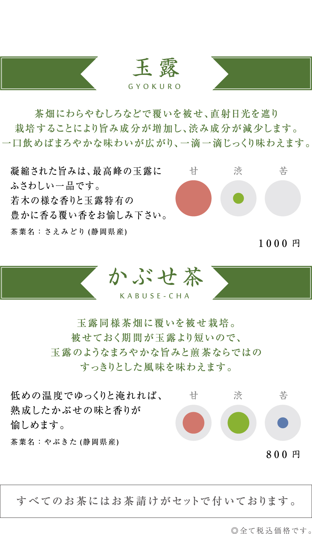 (お茶請けは、季節によって変わる数種類の中から選べます。)